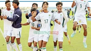 এএফসি অনূর্ধ্ব-১৭ এশিয়ান কাপ বাছাই পর্বে বিজয়রথ ছুটছেই বাংলাদেশের। টানা চার ম্যাচে জিতেছে লাল সবুজের কিশোররা। শুক্রবার চীনের চংকিনে অনুষ্ঠিত ম্যাচে বাহরাইনকে ২-১ গোলে হারিয়েছে তারা। বাংলাদেশের হয়ে বায়েজিদ ও মানিক একটি করে গোল করেন।